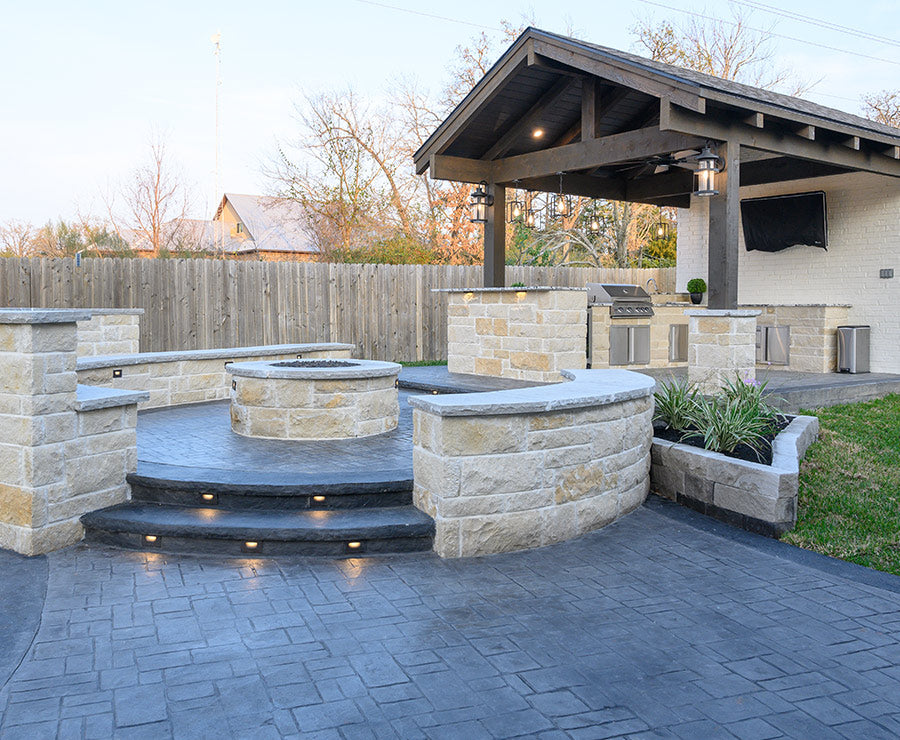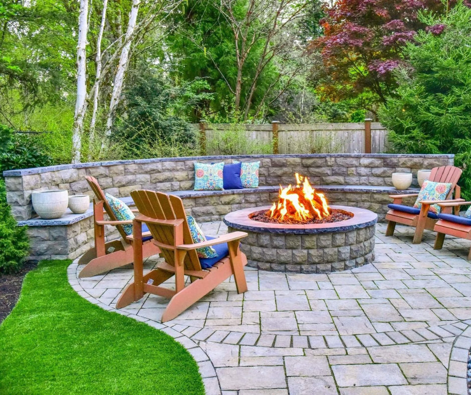 Gather Around the Glow: A stone firepit adds warmth, charm, and a cozy focal point to your outdoor space, perfect for evenings spent with friends and family.
